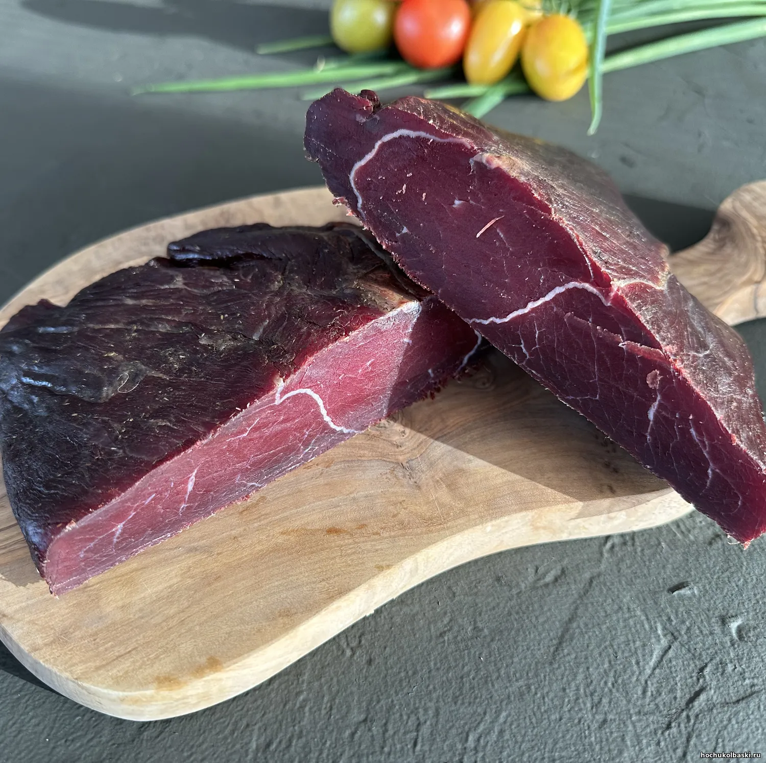 Наш говяжий хамон – это элитный мясной деликатес, созданный по испанской технологии длительной выдержки, но из отборной говядины. Идеальный выбор для ценителей изысканных вкусов и тех, кто ищет новые гастрономические впечатления.